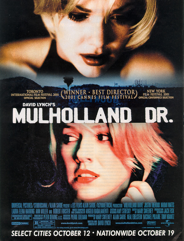 Mulholland Dr. is definitely a love story—one fraught with competition, petty jealousies, one-upmanship, and ultimately murder. Lynch’s trademark sense of humor flickers here and there, but this is still dark stuff. I see Mulholland Dr. as a denouncement of Hollywood and all its ruthless superficiality. It’s a town that eats you up and spits you out.