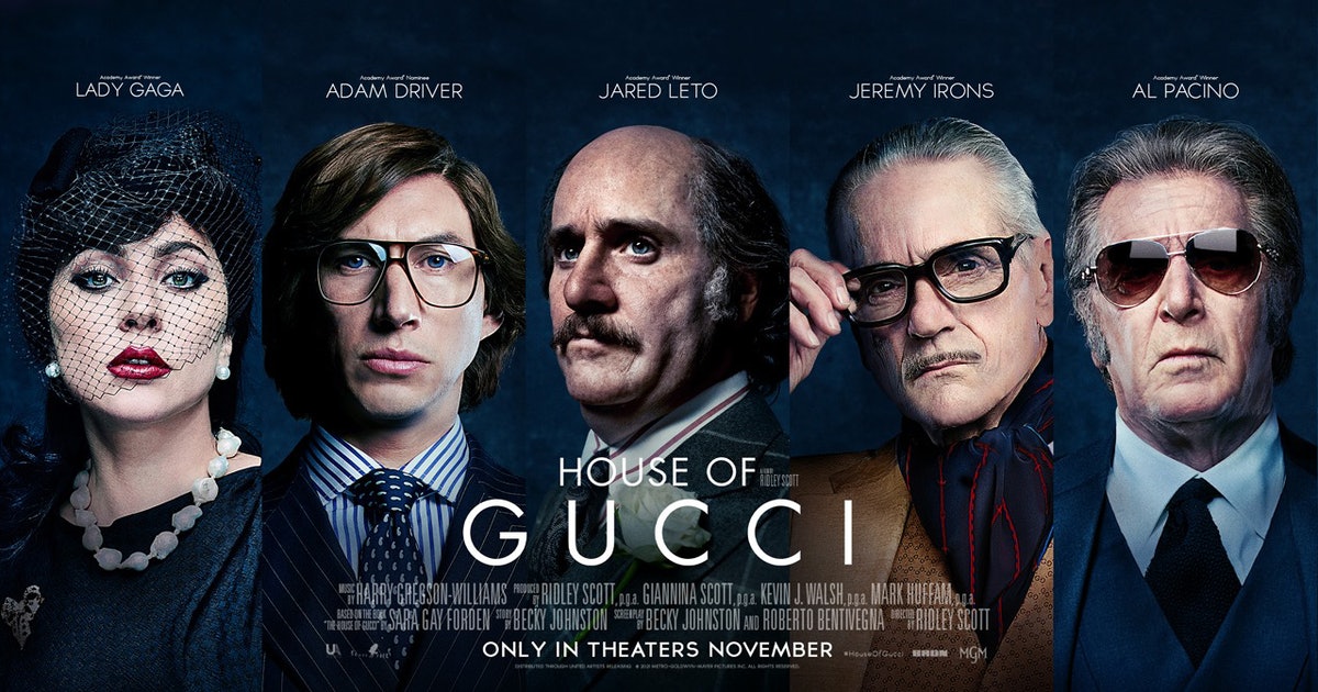 The story chronicles the rocky relationship of Patrizia Reggiani (Lady Gaga), a girl from the wrong side of the tax, so to speak, who marries up; and Maurizio Gucci (Adam Driver), her catch: that Gucci, the heir to the fashion dynasty. Her ambition pushes her husband and the family business to unexpected heights but destroys everything else in the process. Every. Single. Thing.